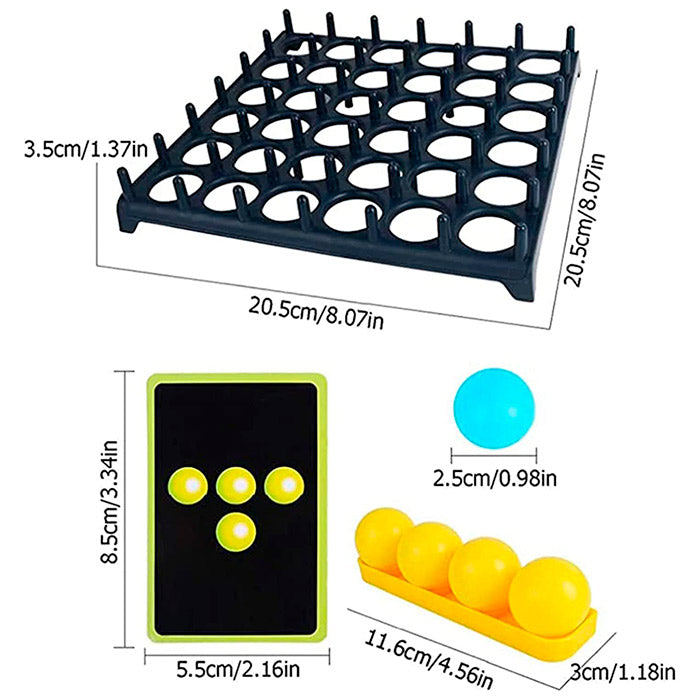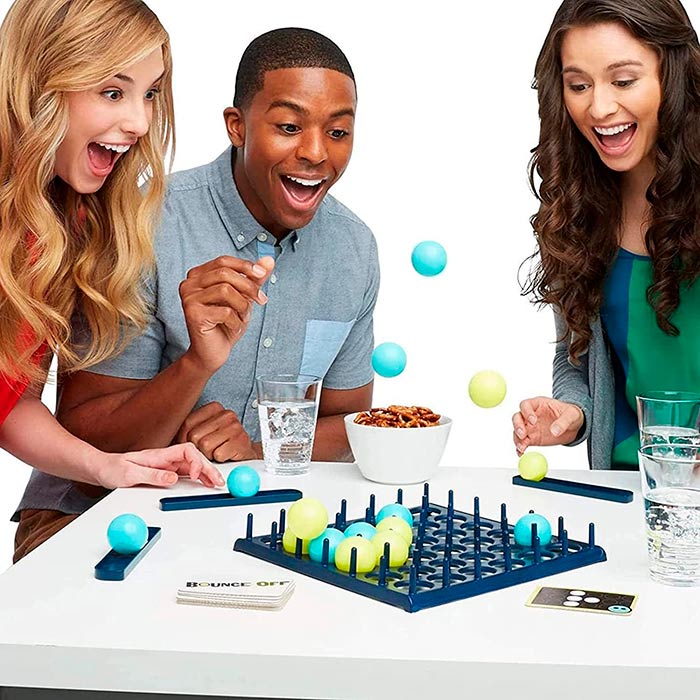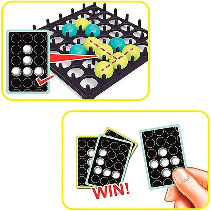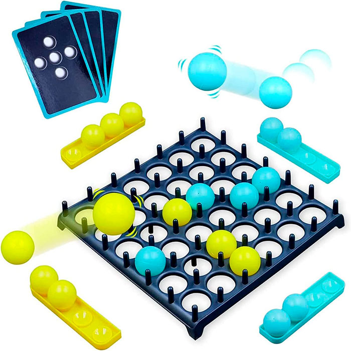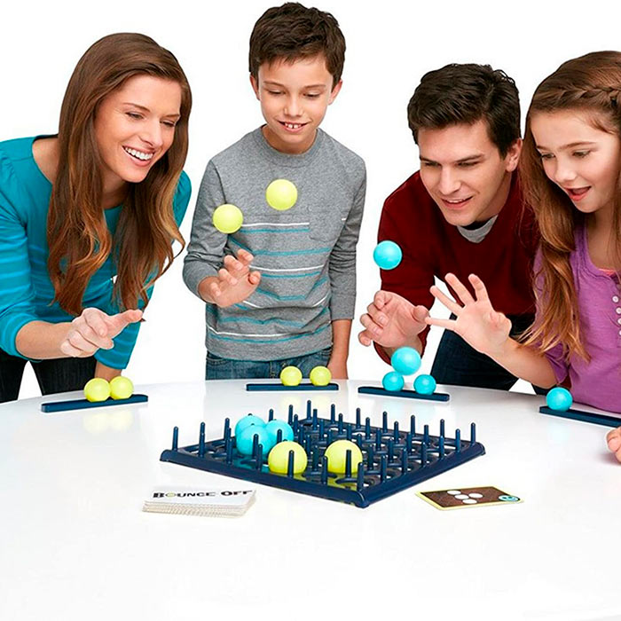 Društvena igra za 2 ili više igrača.Podelite se u 2 tima, podelite loptice iste boje i stavite karte licem prema dole na gomilu.Prvi tim se bira nasumično i izvlači 1 kartu.Pokušavaju da ponovo kreiraju uzorak na kartici sa kuglicama na tabli za igru.Lopta mora 1 put odskočiti od stola i sleteti na pravo mesto.Ako doleti pogrešno, na redu je drugi tim.Pobeđuje prvi tim koji ponovo stvori celi obrazac.